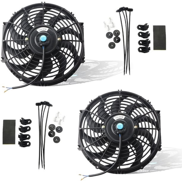 Black Universal Electric Radiator Slim Fan Push Pull 12v Mounting Kit 12 Inch Set Of 2 Walmart Com
