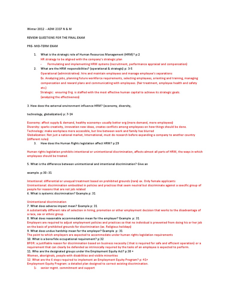 Adm 2337 Hr Uottawa Study Notes Pdf Employment Performance Appraisal